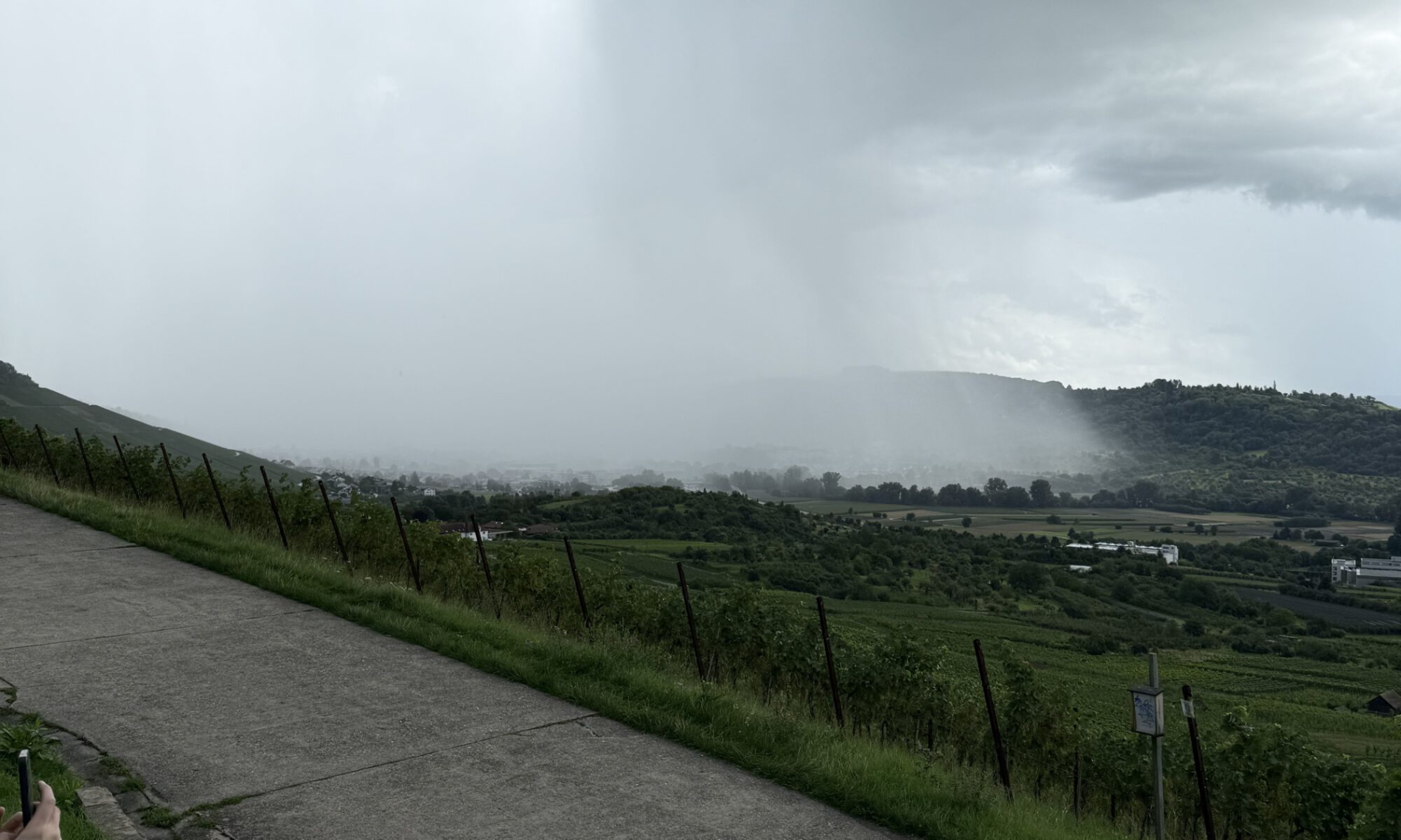 Immerhin: Unsere Reben hatten ihren Rückstand aus dem Frühjahr nicht nur aufgeholt, sondern sogar überholt. Wenigstens etwas Positives in diesem Wetterchaos.