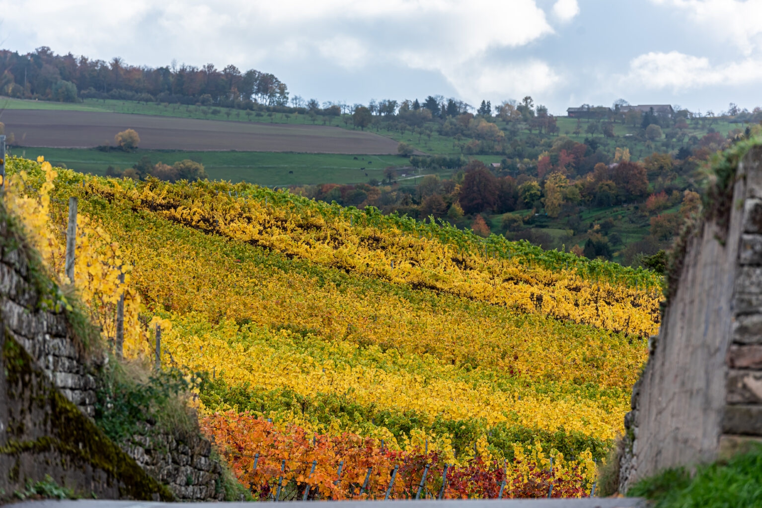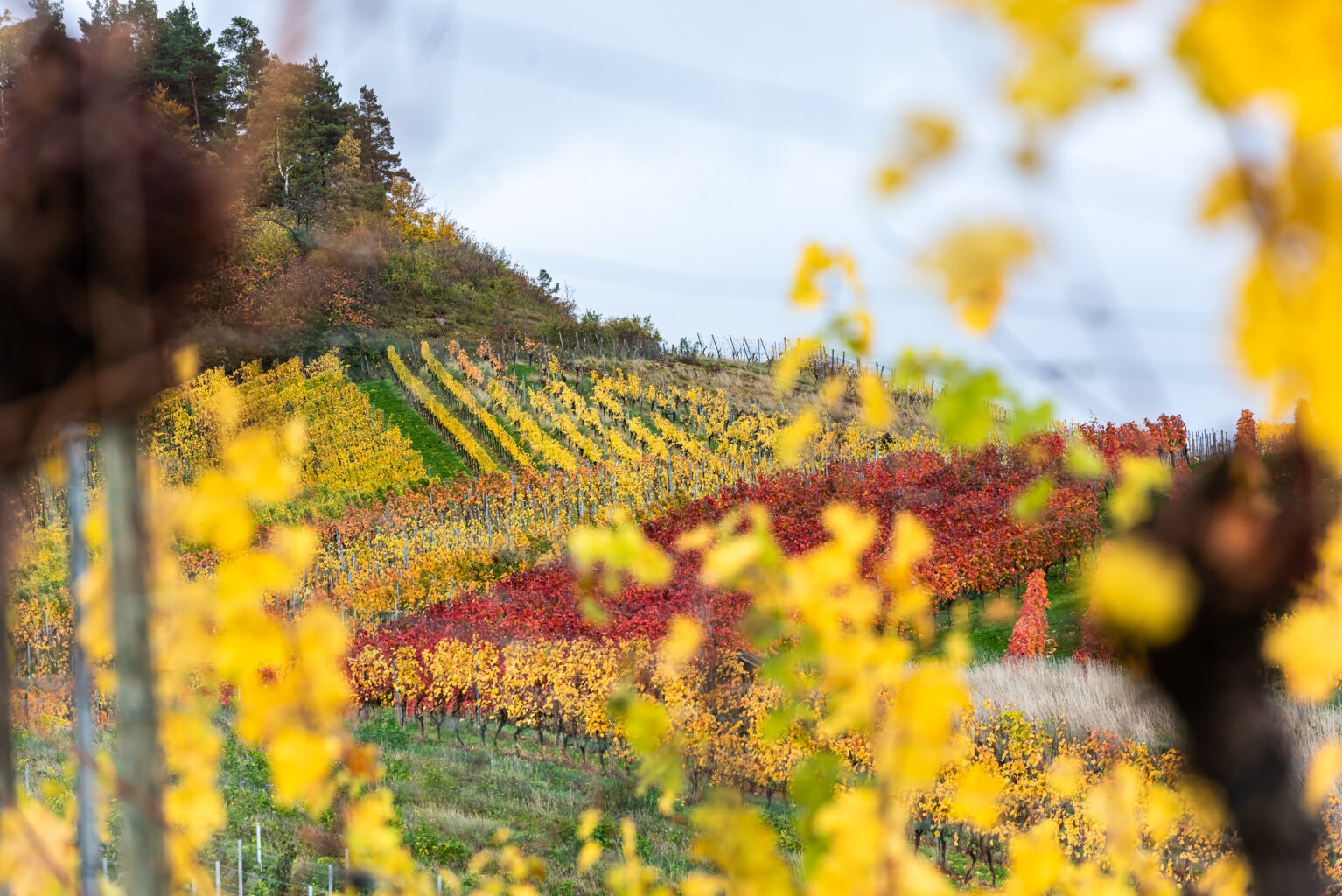 Der Herbst hat die Landschaft in ein buntes Farbenmeer getaucht. Nach einem intensiven Jahr gönnen sich die Rebstöcke eine wohlverdiente Pause. Die Natur kommt zur Ruhe, bereitet sich auf den Winterschlaf vor. Jetzt ist Zeit für Stille, für das Innehalten am Jahresende. Der Rebschnitt folgt erst im neuen Jahr – bis dahin dürfen die Weinberge Kraft sammeln für das nächste Kapitel.